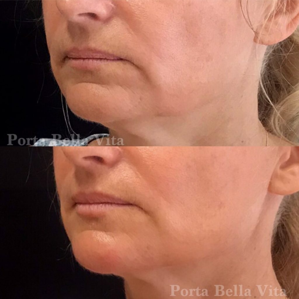 Az alábbi kezelések során az állív határozottabb kontúrjának kialakítását, illetve az állcsúcs pozíciójának helyreállítását végeztük el, melynek eredményképeit mutatjuk most be Önöknek is.