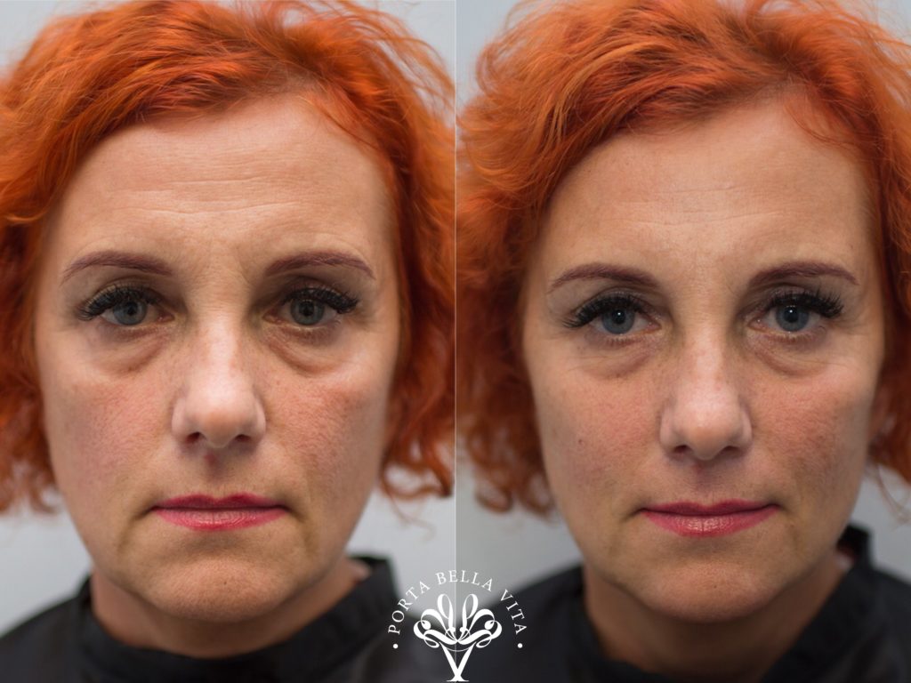 Az abszolút természetes megjelenés megtartása mellett emeltünk, simítottunk, kontúroztunk, hogy a fiatalos, nőies megjelenést javítsuk, a szép vonásokat hangsúlyozzuk, figyelembe véve az arc optimális arányait.